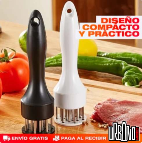 El ablandador de carne con agujas de acero inoxidable es indispensable en cualquier cocina, ya que combina practicidad, eficiencia y resultados profesionales.